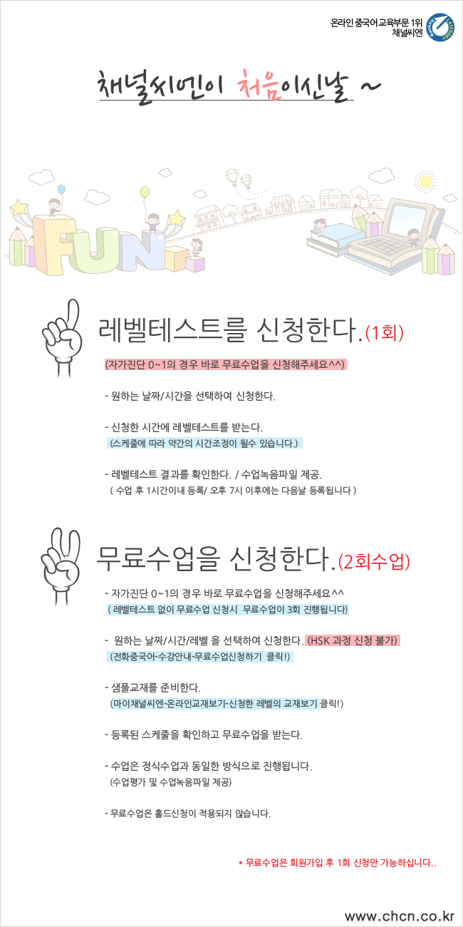 중국어공부가 처음이신 분 혹은 기초회원님들께는 레벨테스트를 받지 않고~