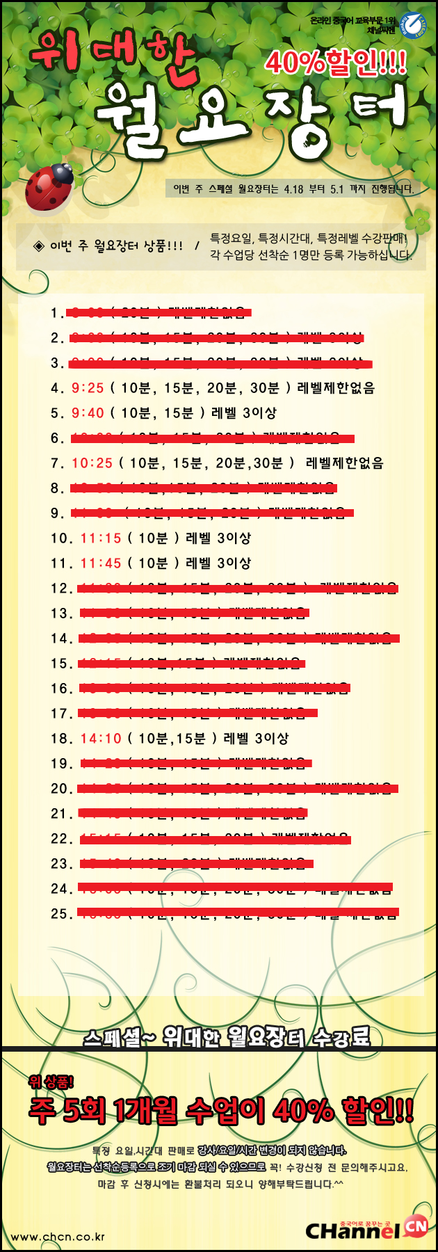 94 (마감) 스페셜이벤트 월요장터 4/18~5/1 채널씨엔 2011-04-03 8067