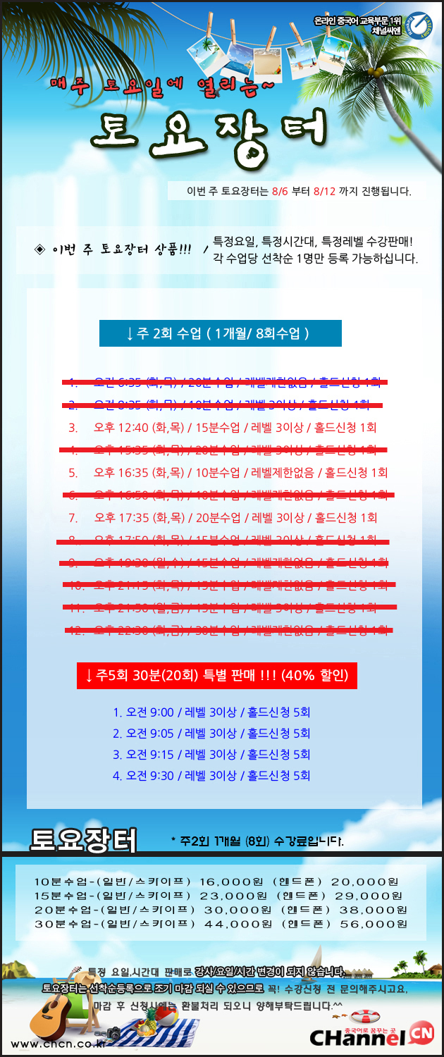 >> 토요장터 등록은 계좌이체,무통장 신청시 입금 순으로 등록이 됩니다.