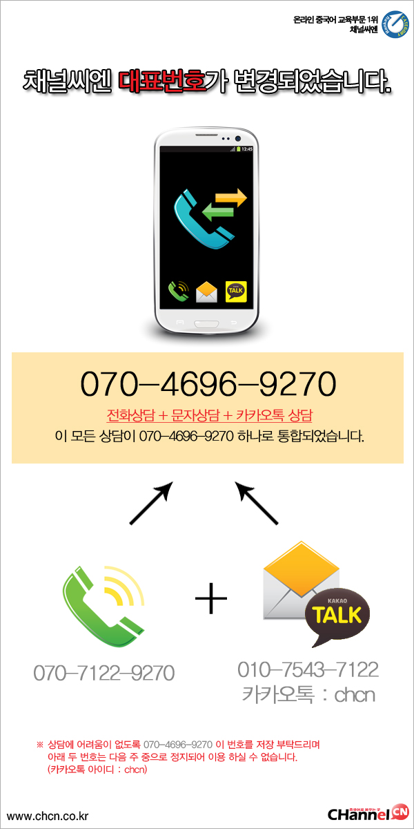 134 고객센터 번호 변경안내 채널씨엔 2013-09-25 6792