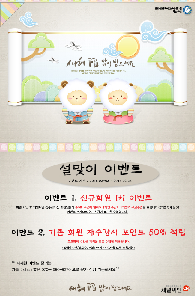 설맞이 신규수강 1+1의 경우 개근상은