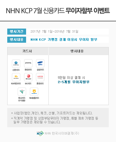 7월 신용카드 무이자할부 안내입니다 !!!!!