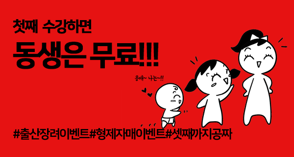 #형제자매 수업은 첫째가 신청 시 둘째/셋째가 무료수업 받는 이벤트입니다.