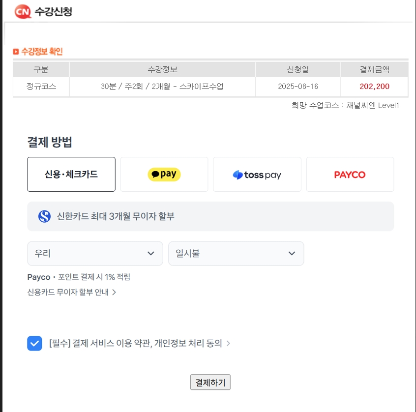 이번주 부터 저희 결제 화면 업데이드 하였습니다.